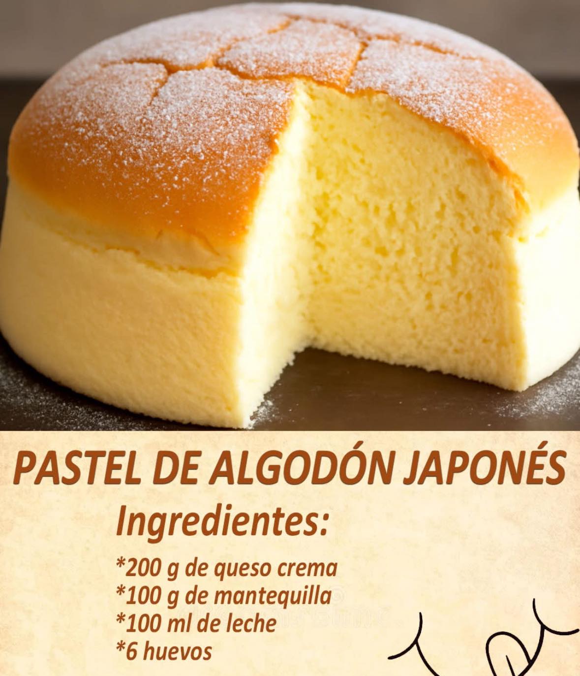 : 🎂 Pastel de Algodón – Suave y Esponjoso como una Nube ☁️✨ El pastel de algodón es una delicia de textura ultra ligera y esponjosa, muy similar a un cheesecake japonés pero sin queso. Suave, aireado y con un dulzor delicado, este pastel es perfecto para acompañar con café o té.